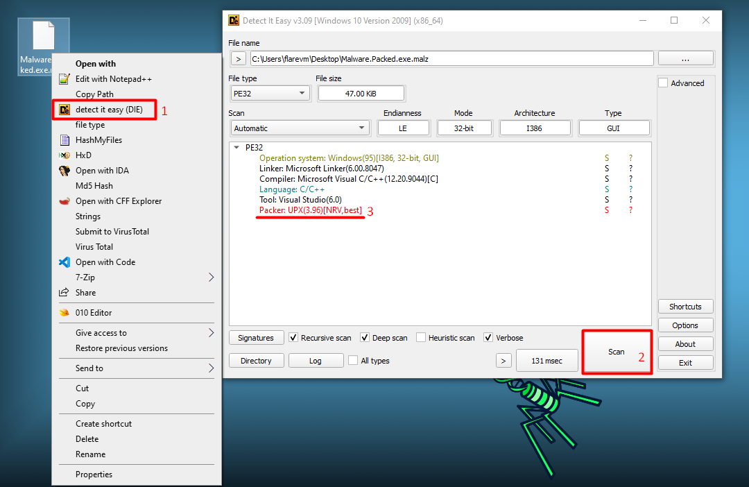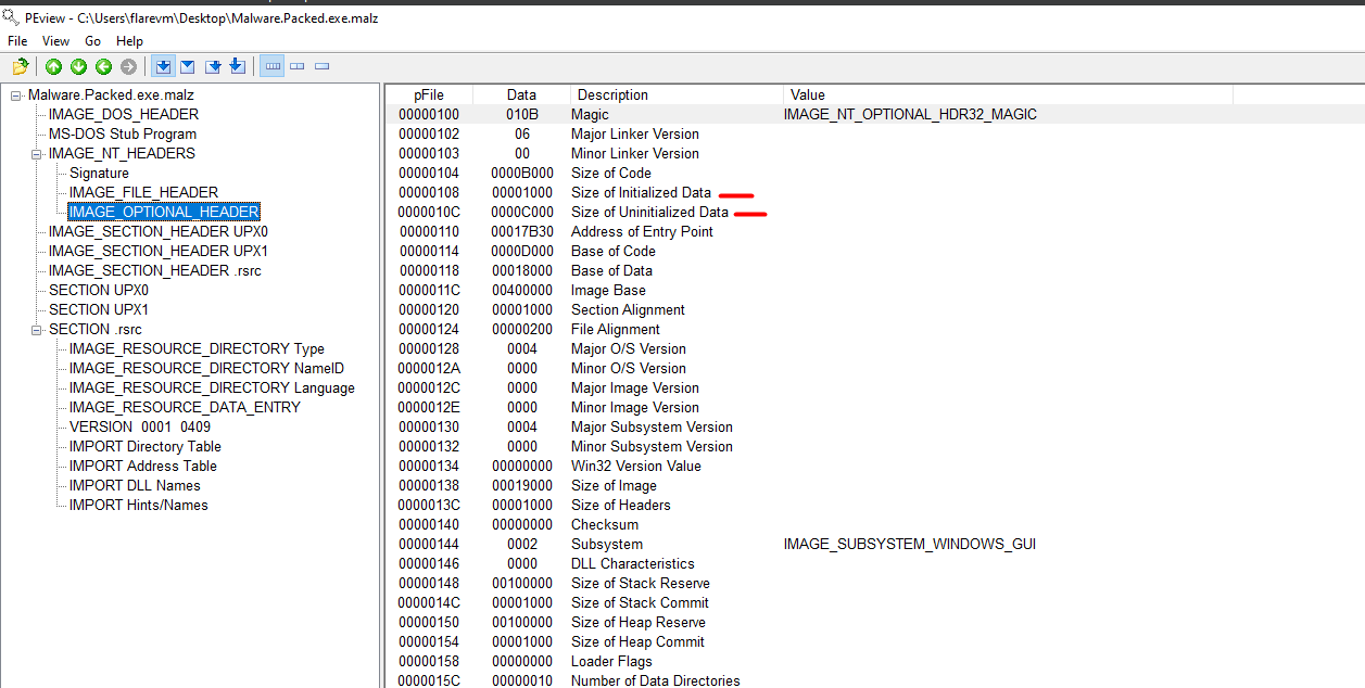 With Detect It Easy, we can see that the Malware.Packed.exe.malz is packed (No way!! Thanks Captain Obvious). Okay, jokes on me, but, here we can see that the packer is UPX, the most common packer used for malwares! We can surely depack this sample with